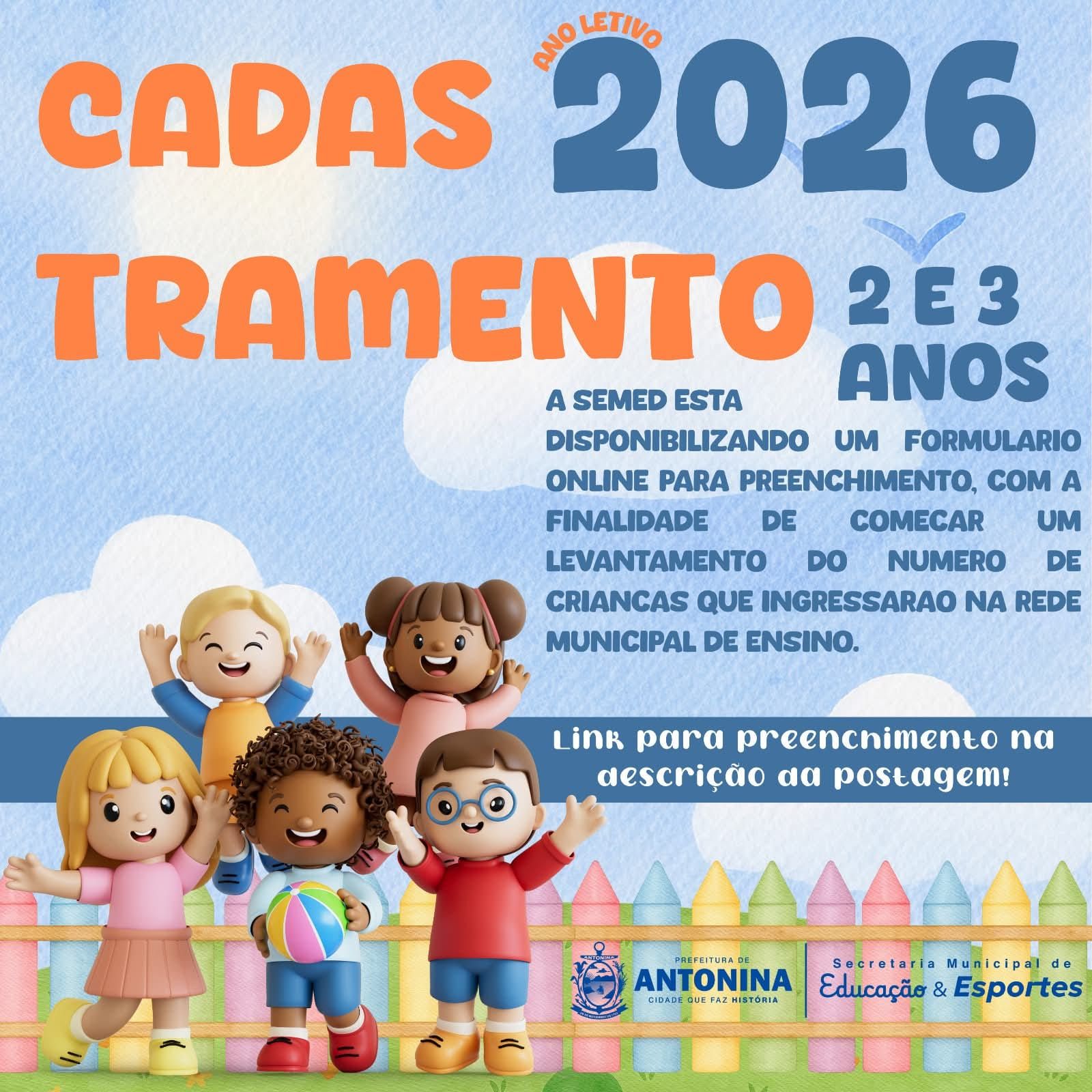 A Prefeitura de Antonina, através da Secretaria Municipal de Educação (Semed), divulgou o cronograma oficial de matrículas e rematrículas para o ano letivo de 2026 na Rede Municipal de Ensino. As datas abrangem todas as etapas, desde a Educação Infantil até os anos iniciais do Ensino Fundamental, garantindo organização e atendimento adequado às famílias antoninenses.
