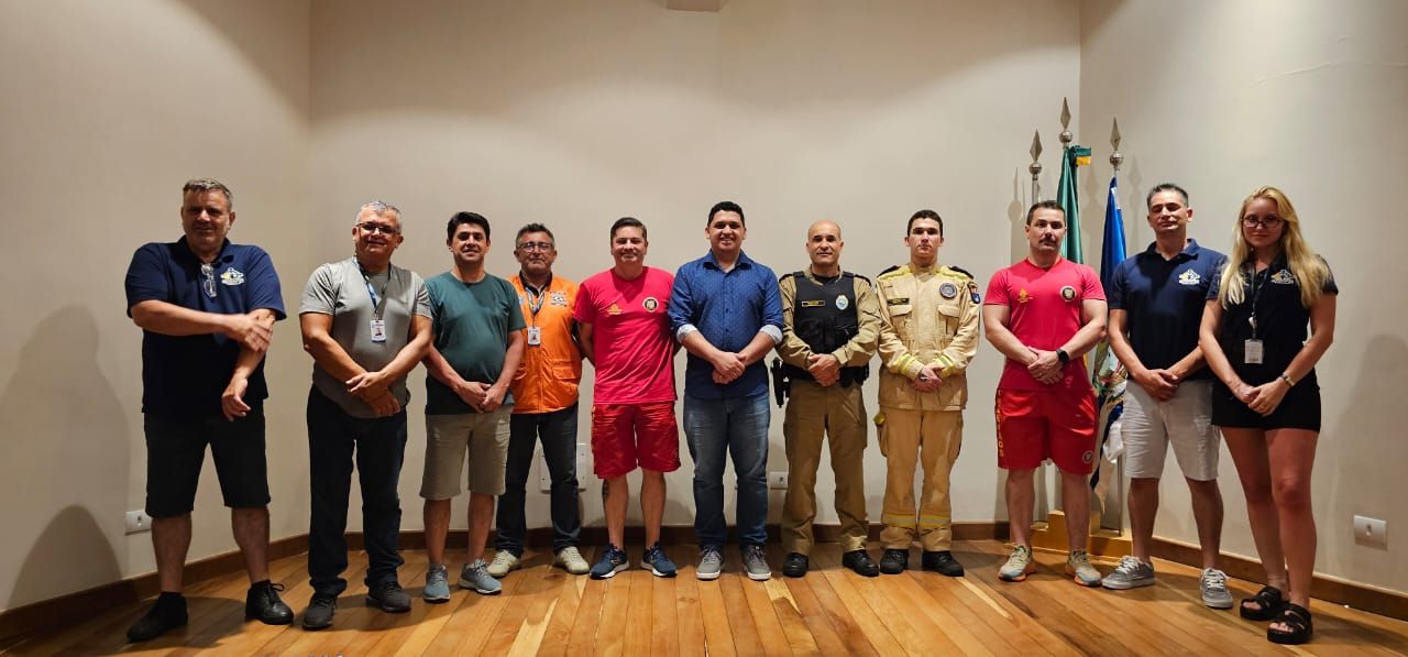 Destacam-se as presenças de representantes do Corpo de Bombeiros e da Polícia Militar, além do Chefe de Gabinete da Prefeitura e os Secretários Municipais de Segurança, da Comunicação Social e da Defesa Civil.