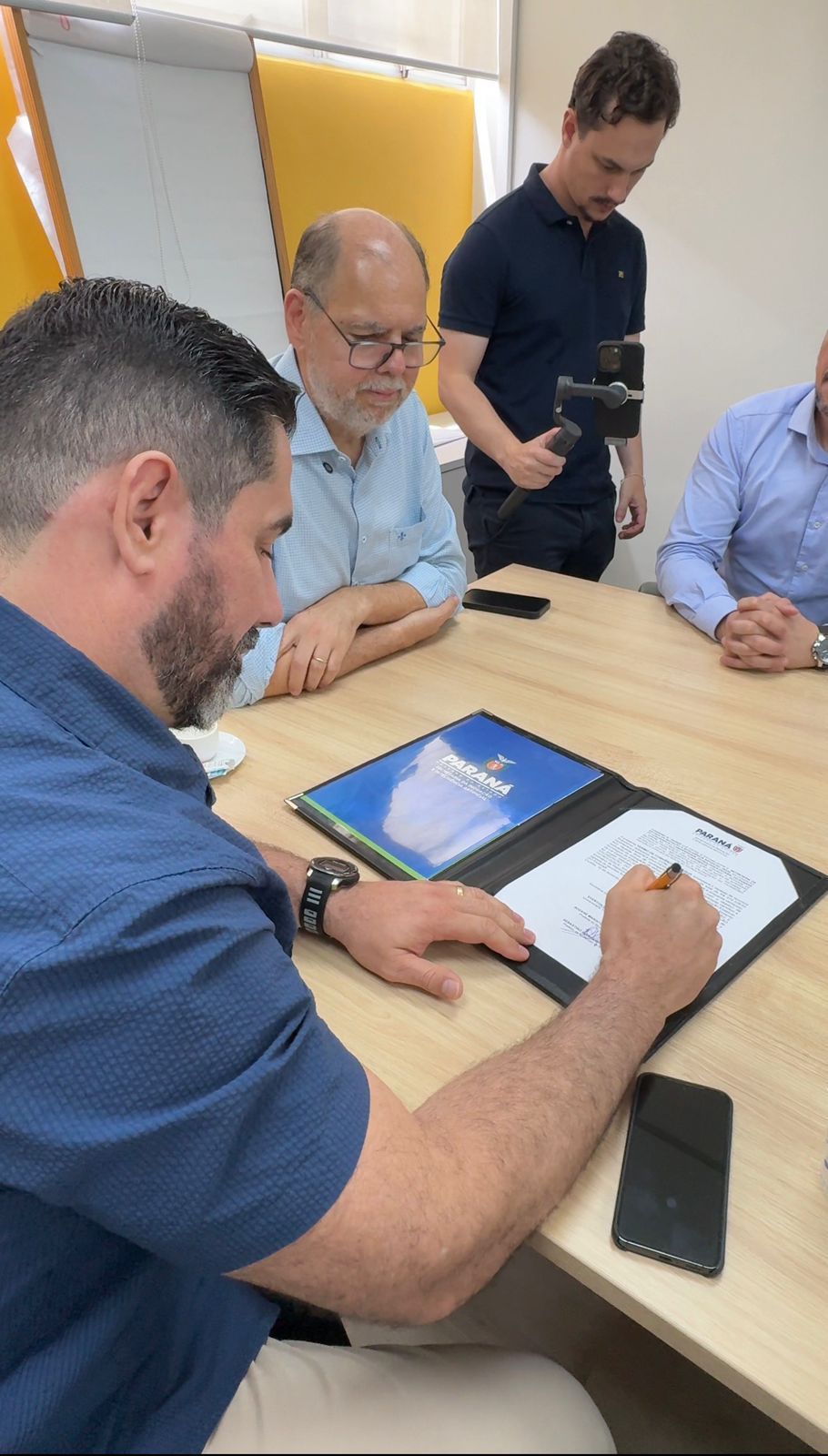 Na última terça-feira (16), representando a prefeita Rozane Osaki, o secretário municipal de Administração, Jean Pierre, e o secretário de Indústria e Comércio, Marlon Cruz, estiveram em Curitiba para participar da assinatura do convênio entre a Secretaria da Inovação e Inteligência Artificial (Seia), a Secretaria da Ciência, Tecnologia e Ensino Superior (Seti) e a Universidade Tecnológica Federal do Paraná (UTFPR).