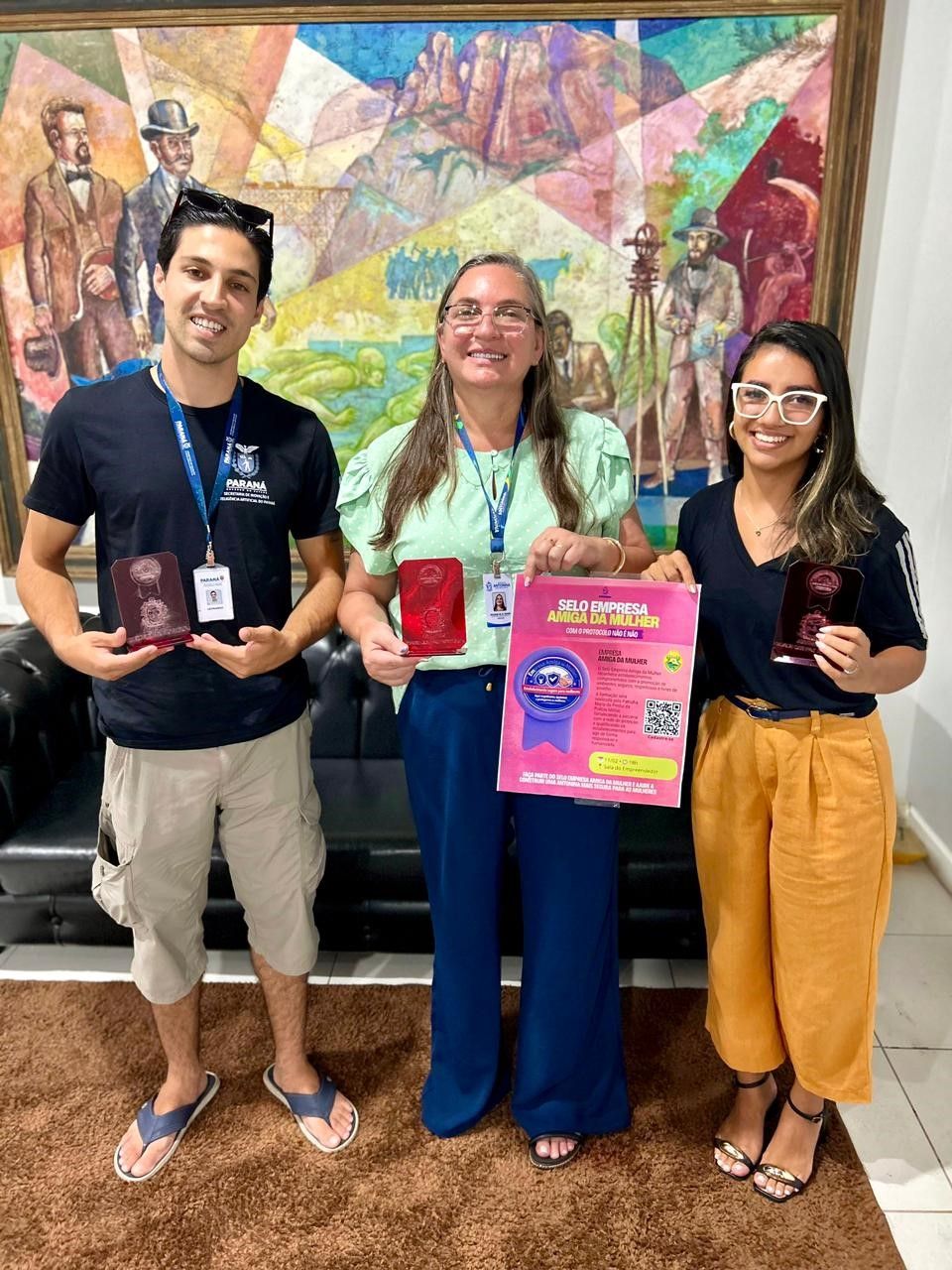 A Secretaria da Mulher de Antonina recebeu os acrílicos que serão entregues aos comerciantes participantes da formação do Selo Empresa Amiga da Mulher, que acontece no dia 11 de fevereiro. A entrega foi realizada no gabinete da prefeita Rozane Osaki.