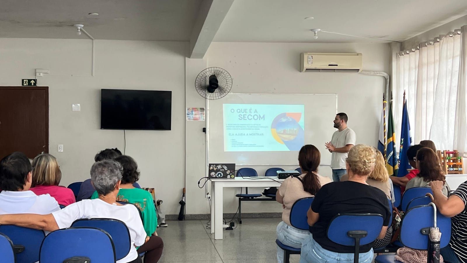 Durante a atividade, foi apresentado o trabalho desenvolvido pela Secom, destacando a importância da comunicação oficial na divulgação das ações da administração municipal e no fortalecimento do vínculo entre a Prefeitura e a comunidade. Também foram abordadas as principais demandas atendidas pela secretaria, além de explicar como funciona o processo de produção e divulgação das informações institucionais.