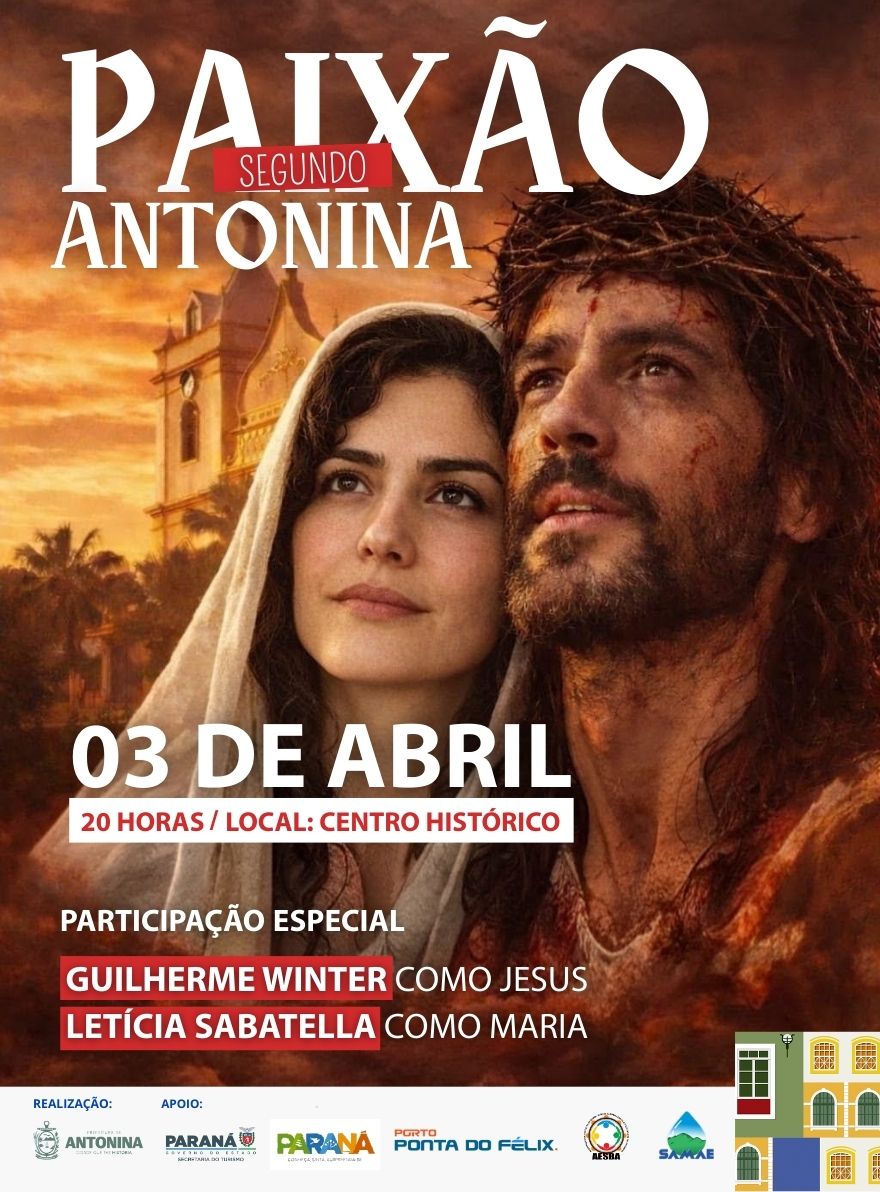 A cidade de Antonina se prepara para receber um dos eventos mais aguardados do calendário cultural e religioso. No próximo dia 03 de abril, às 20h, o Centro Histórico será palco do espetáculo “Paixão Segundo Antonina”, que promete emocionar moradores e visitantes com uma encenação marcante da história da Paixão de Cristo.