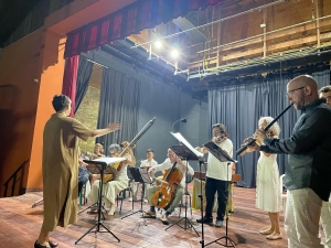 Na noite desta quinta-feira (06), o Theatro Municipal de Antonina foi palco de um espetáculo inesquecível com o concerto "Monteverdi em Tempos de Peste". O evento trouxe ao público um repertório refinado da música renascentista e barroca, com obras de Claudio Monteverdi, Biaggio Marini e Salomone Rossi, interpretadas com instrumentos históricos como teorba, cravo, guitarra barroca e corneto.
