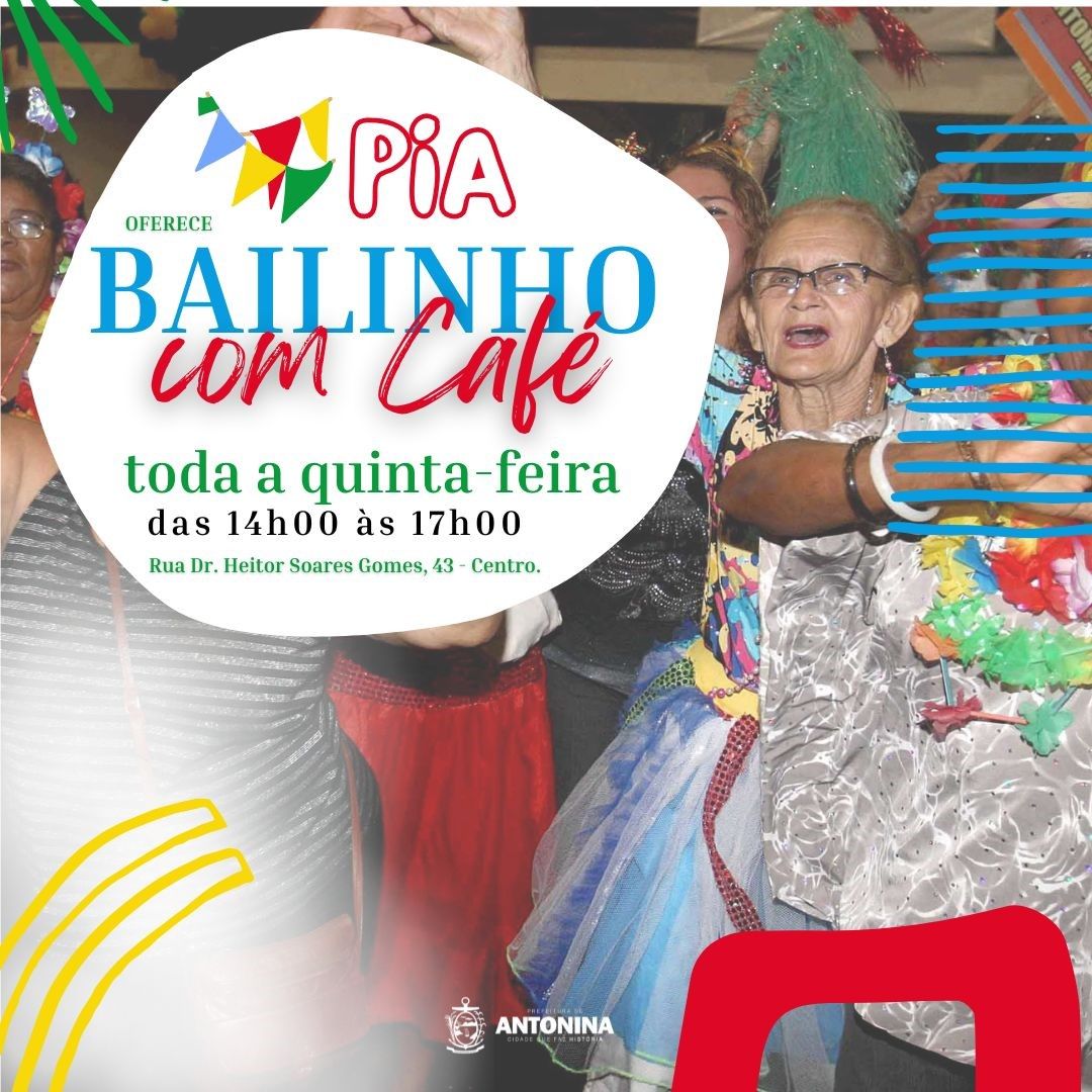 A Prefeitura de Antonina, através da Secretaria Municipal de Assistência Social de Antonina em parceria com o PIA, convida a comunidade para participar do Bailinho com Café, um momento especial de confraternização, música e alegria.