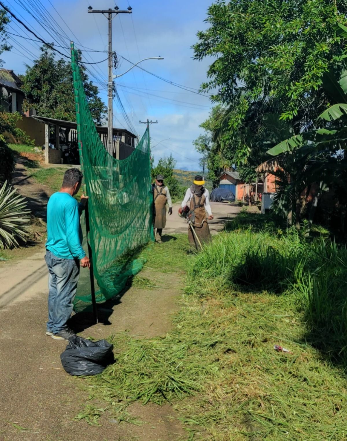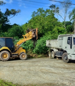 Nesta segunda-feira (26), os serviços de roçada e varrição continuam em andamento, com equipes atuando no bairro do Portinho e na área central do município.