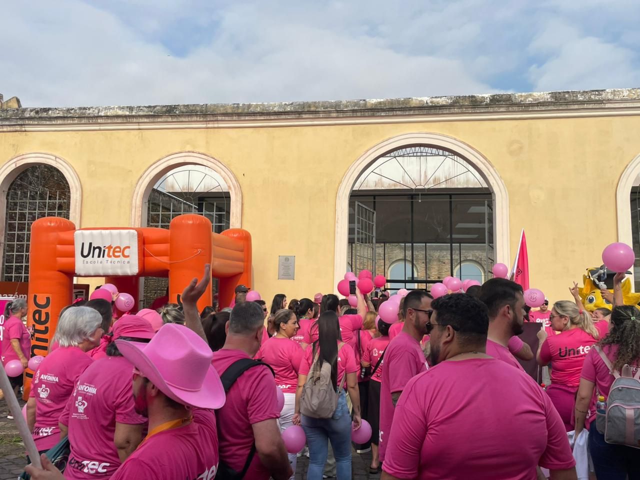 A concentração aconteceu no Centro Esportivo Joubert Gonzaga Vieira, onde os participantes iniciaram a tarde com alongamentos e muita animação. Todos vestidos de rosa, seguiram em caminhada até o Armazém Macedo, acompanhados pelo projeto Fanfarra Única, que trouxe ritmo e energia ao percurso.