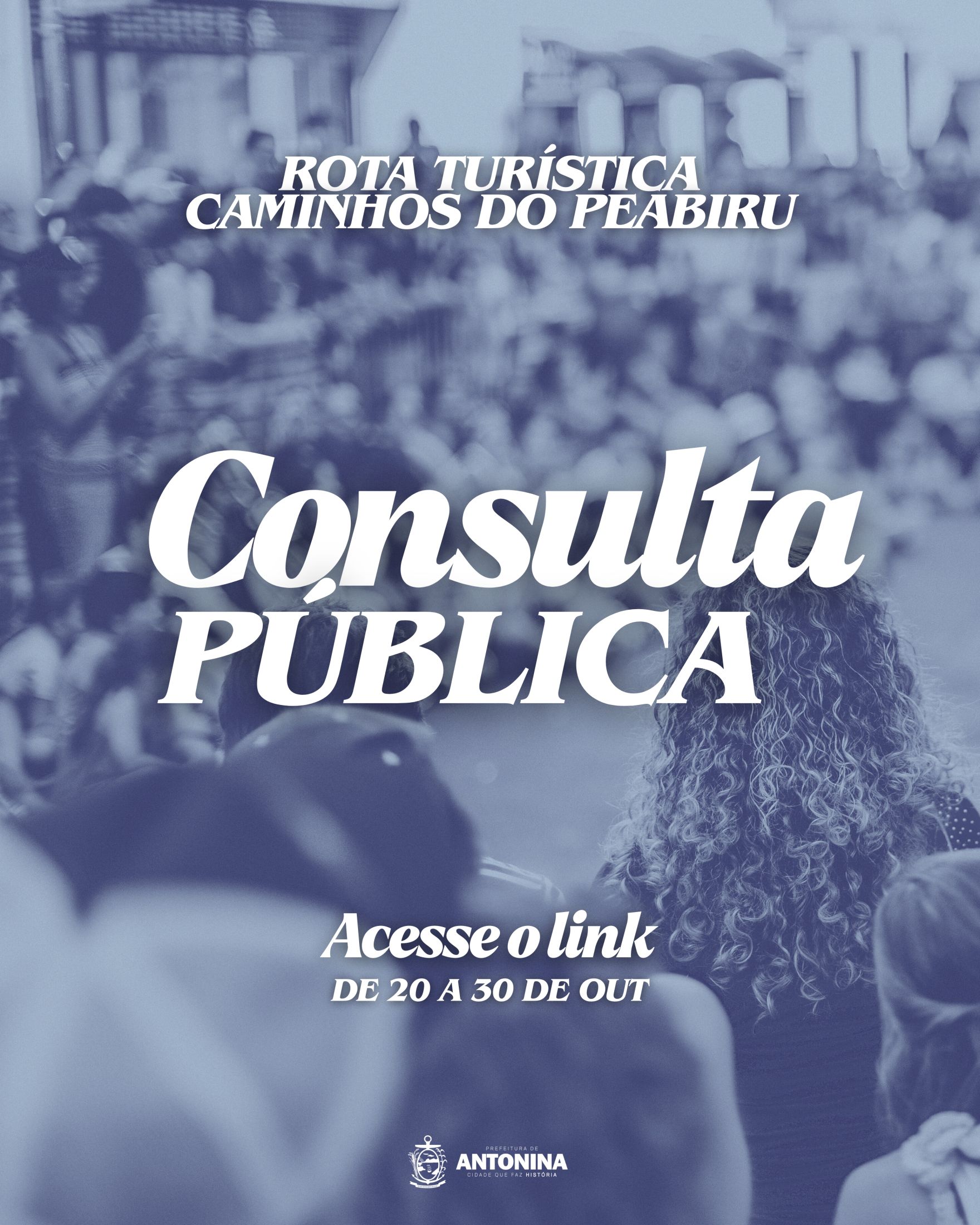 A Prefeitura de Antonina convida toda a população a participar da Consulta Pública da Rota Turística Caminhos do Peabiru, que acontece de 20 a 30 de outubro de 2025.