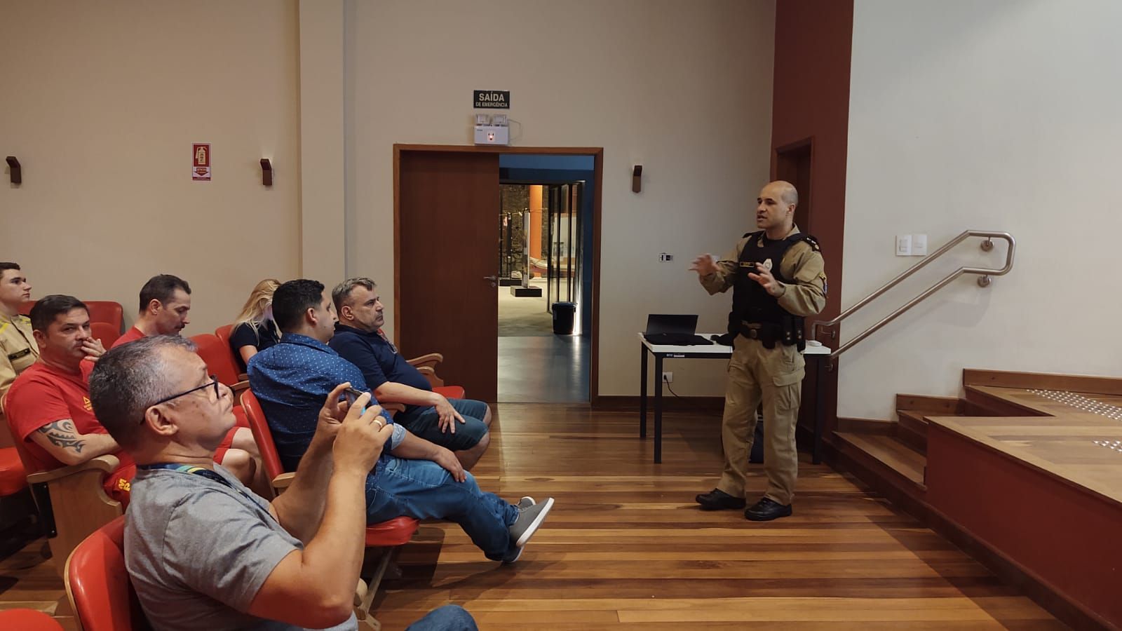 Destacam-se as presenças de representantes do Corpo de Bombeiros e da Polícia Militar, além do Chefe de Gabinete da Prefeitura e os Secretários Municipais de Segurança, da Comunicação Social e da Defesa Civil.