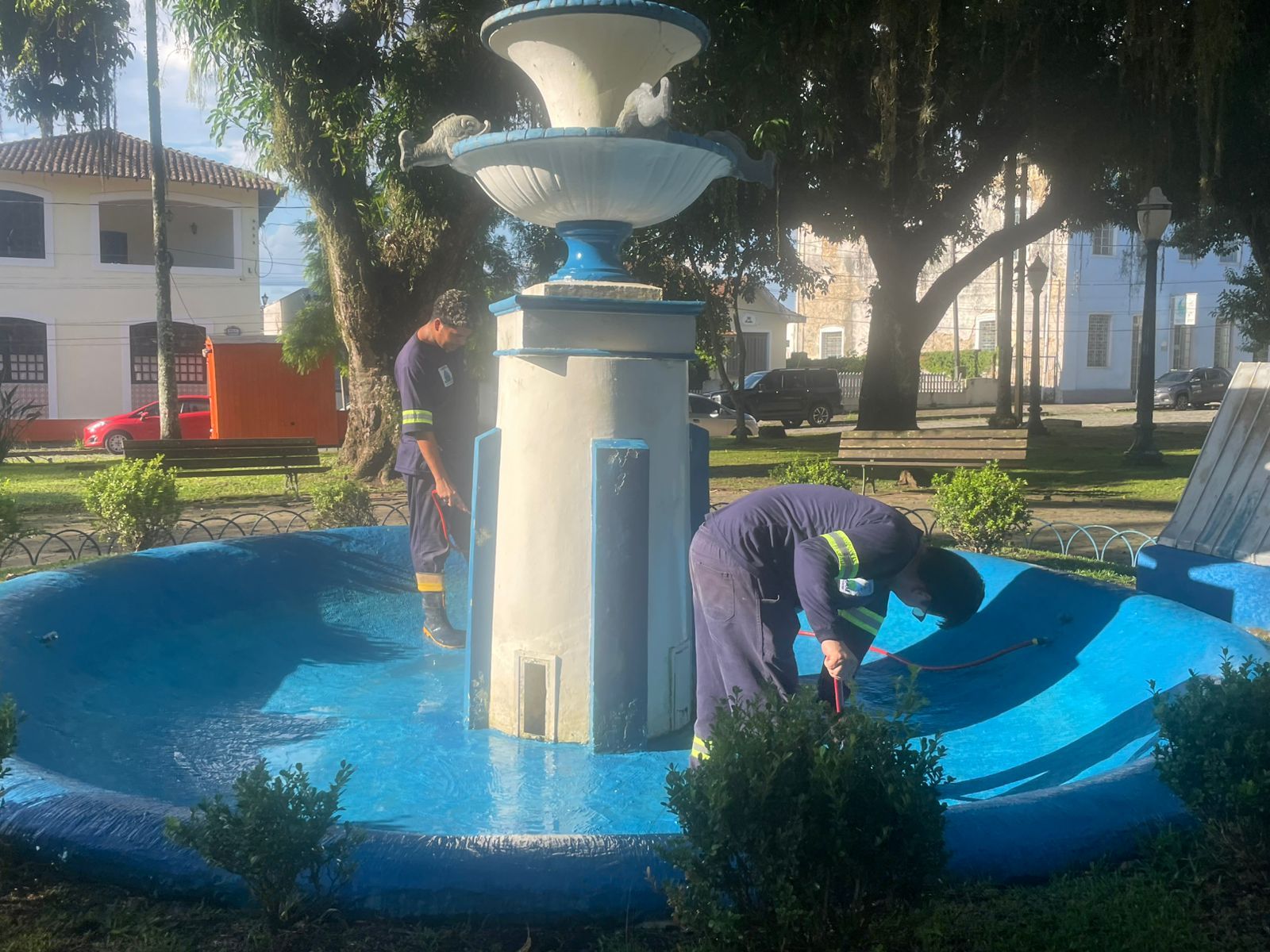 O serviço foi executado por uma empresa terceirizada contratada pelo SAMAE, responsável pela limpeza e manutenção da estrutura. A ação incluiu a retirada de resíduos, higienização do espaço e verificação das condições do chafariz.