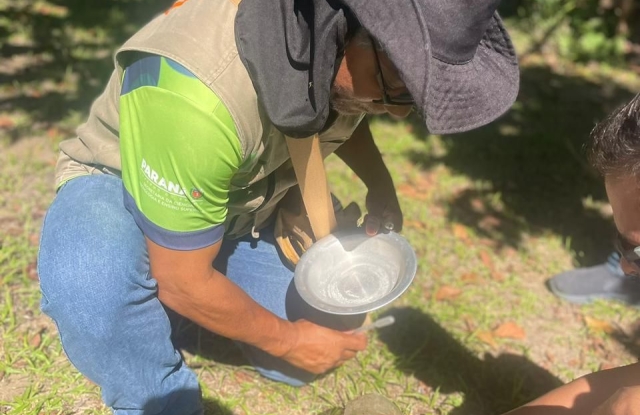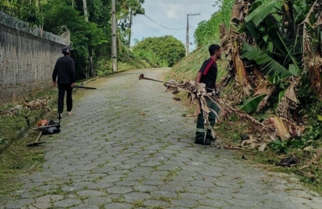 Formação rochosa que avança para dentro da baía de Antonina, situada numa região onde as águas do Oceano Atlântico encontram as encostas da Serra do Mar.