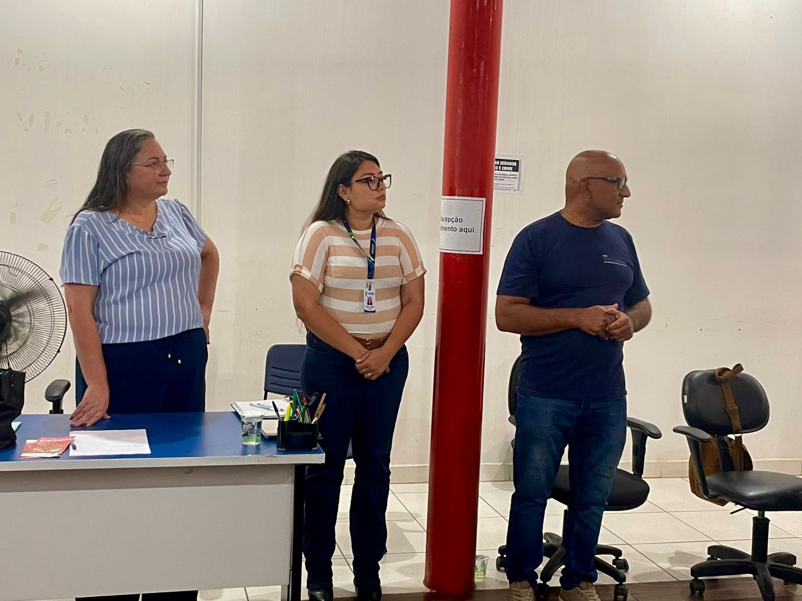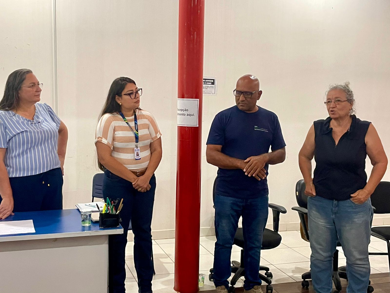A reunião contou com a presença da prefeita Rozane Osaki, da secretária de Assuntos Fundiários Alana Rodrigues, do secretário de Comunicação Wilson Clio, dos vereadores Tharson Assanuma e Vitor Fernandes, além do representante da REURB, José.