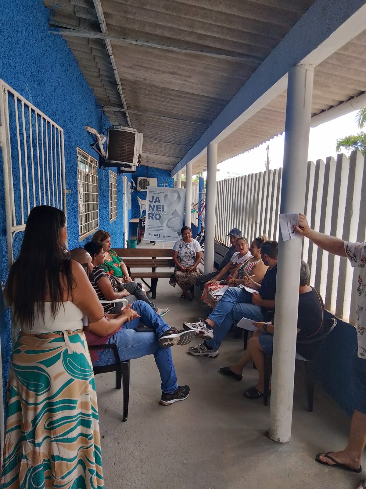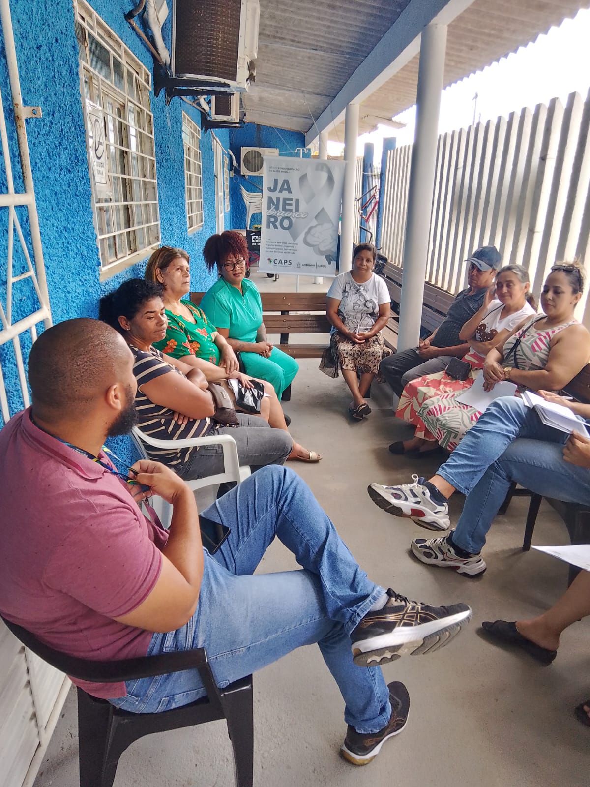 A ação é desenvolvida em parceria com o Centro de Atenção Psicossocial (CAPS), que promove encontros e palestras informativas, orientando a comunidade sobre temas como bem-estar psicológico, prevenção de transtornos mentais, acolhimento e a busca por ajuda especializada.